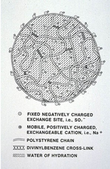 圖4、水合強(qiáng)酸陽離子交換劑的示意圖。(由羅門哈斯公司提供。)